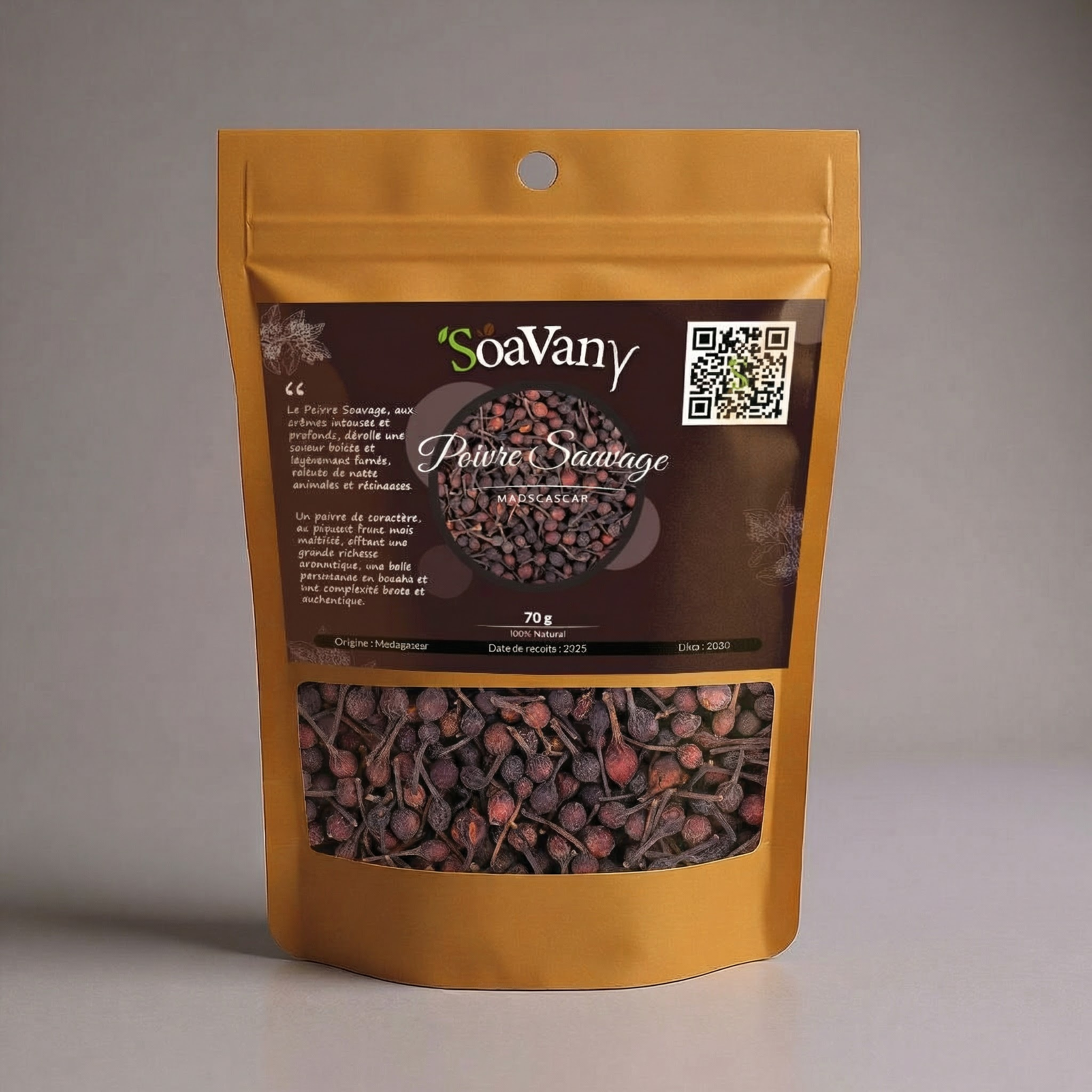 Poivre sauvage Voatsiperifery récolté à Madagascar, reconnu pour son profil aromatique unique aux notes boisées, florales et légèrement citronnées. Ces baies entières offrent une intensité parfumée élégante et raffinée, idéale pour sublimer aussi bien les plats salés que certaines préparations sucrées. Parfait pour :